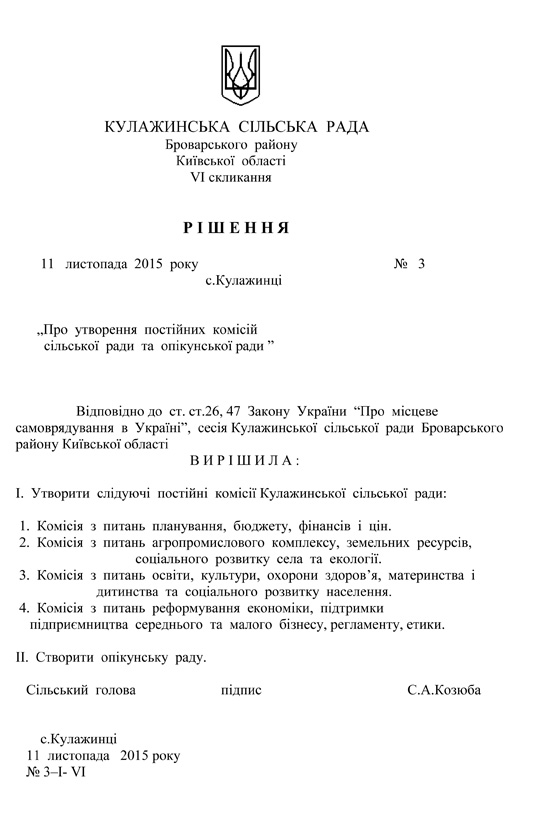 Рішення №3 "Про утворення постійних комісій сільської ради та опікунської ради"